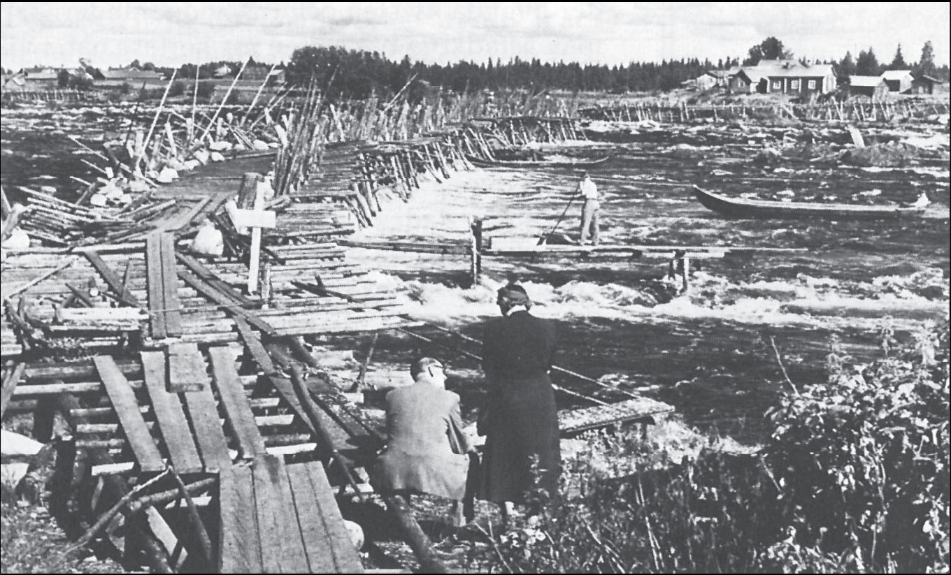 Den stora laxpatan (Hevospato) vid Kukkolaforsen i Torne älv under 1800-talet var av samma typ som patan vid Turkka i Ule älv under 1500-1600-talet. Foto/kuva/photo: Bert Persson, Luleå.
